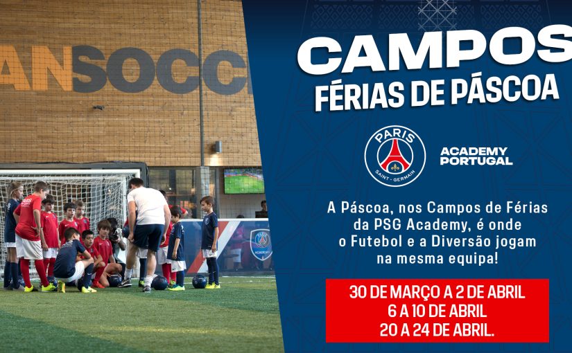 Para além da academia que funciona durante toda a época desportiva, a PSG Academy realiza também Soccer Camps e tem o prazer de anunciar que se encontram abertas as inscrições para o campo de férias PSG Academy – Páscoa que se realizarão nas seguintes semanas :